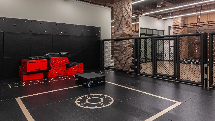 Также в зоне доступны мешки с гелевым и воздушным наполнением, снижающие нагрузку на кисти рук, и инвентарь для отработки ударной техники.